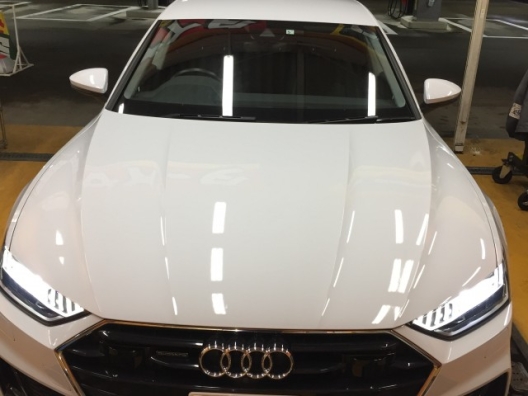 施工終了後に車を見に行くと、ボディがピカピカに反射していて、とてもきれいな仕上がりでした。その際、シートにはカバーがかけられていたので、作業中はカバーをかけた状態で作業していたと思われます。