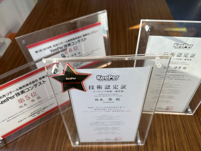 みらい平店には、キーパーコーティング技術1級資格者3名、キーパーコーティング技術2級資格者3名が在席しております。