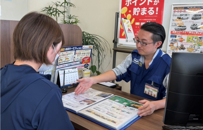 休憩室には自動車のパンフレットや各種サービス案内、新聞が置かれていましたが、全体的に整然としていて清潔感がありました。また、自動車のパンフレットなどは色褪せや汚れなどなく綺麗な状態だったので、普段からスタッフさんが気を配られていることが伝わり印象が良かったです。